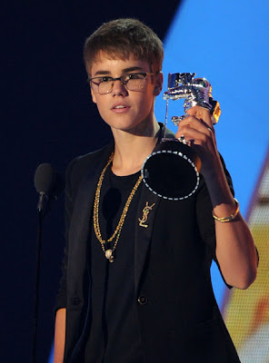 Singer Justin Bieber accepts the Best Male Video award onstage