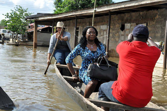 As seen in the these pictures the minister of Aviation, Stella Oduah, needed a canoe before she could get to her compound in Akili village, Anambra State.
