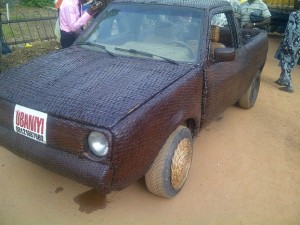 nice..ingenious. giving better tools he can come up with the real thing. this will be a work of art, as a car mad of cane wood cannot withstand the heat from a normal car engine or fuel mixed with heat. but i will say a very very nice attempt. artistic.