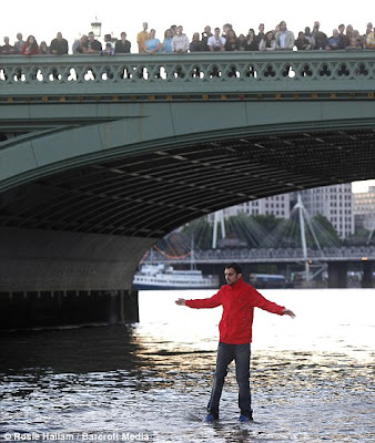 This man, Steve Frayne, may be a relatively unknown illusionist, but you could hardly describe Dynamo as being wet behind the ears. And the magician certainly proved this was the case as he ‘walked’ across the River Thames.