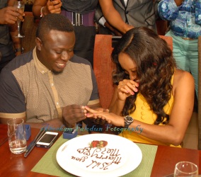 Chinwe went with her boyfriend of three years to what she thought was dinner with friends, but when the waiter brought her plate to the table it was an engagement ring she got from Elenu.
