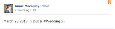 The much anticipated white wedding of Nigerian Afro-Pop star, Tuface Idibia and his baby mama, Annie is now confirmed. The couple would tie the knot in Dubia in late March, insider sources told Olufamous.com. The woman of the house, Annie also confirmed it in her own way.