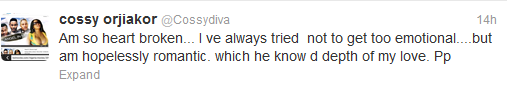 These things can't keep a man. They love it but they get tired of it faster than most ladies can imagine. Cossy has been crying and wishing her guy who dumped her recently would come back and cuddle her but it seems her wish has so far remained just that; a mere wish. The guy has enjoyed what he wanted and he's gone.