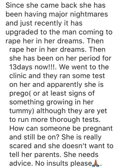Let her voice out to her parent so that they can find the lasting solution for her less is too dangerous oooo blood things are delicate