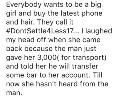 A university student is to have been on her period for 13 days now after following a sugar daddy in a bid to make money and live "big girls" lifestyle. The sad story...
