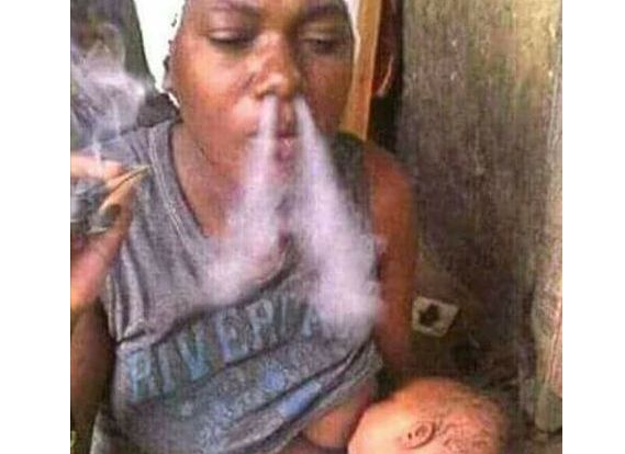She is breastfeeding the baby Igbo! If the baby becomes a drug addict in future, she won't blame herself but witches in the family! If you see such women in action like this, call the police.