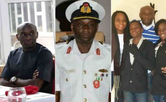 Pic on the right is the Fleet Commander, Western Naval Command, Apapa, Lagos, Rear Admiral Daniel Ikoli and his family before his tragic death.