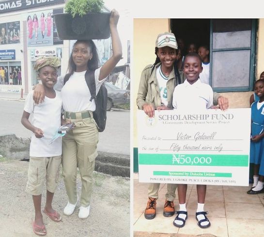 The little she has done will go a long way. A Rivers state NYSC member, Ugwoke Peace Udoka has helped a boy she saw hawking vegetables on the streets of Port Harcourt secure a scholarship.