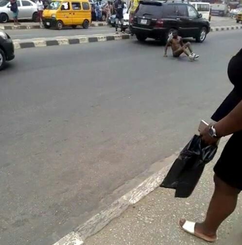 Man Runs Out From A Bank In Lagos & Strips Himself N*ked
