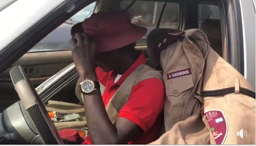 It was gathered that the FRSC official identified as Mr. B. Ojeamiren reportedly bashed a car while driving along the highway and when the driver stopped his vehicle to find out what happened, it was shockingly discovered that the officer who should know better about road safety rules - was very drunk.