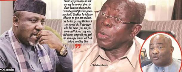 “Adams Oshiomhole was governor in Edo State for eight years. Rochas Okorocha has been governor in Imo for less than eight years. We challenge Oshiomhole to publish his achievements in Edo State for the eight years he was governor and let Rochas publish his own achievements in Imo in less than eight years.