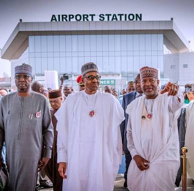 President Buhari yesterday inaugurated the new airport terminal, a development the PDP said was mainly designed to score cheap political points ahead of the 2019 general elections.
