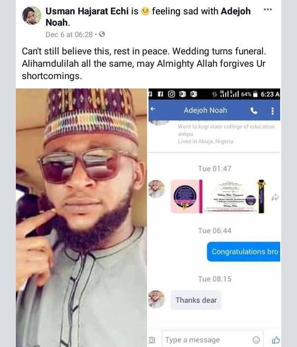 Late Adejoh and his fiance Jemila Muhammed were set to wed on December 28, 2018, in Kogi State. His death comes as a really big blow to people who know him...