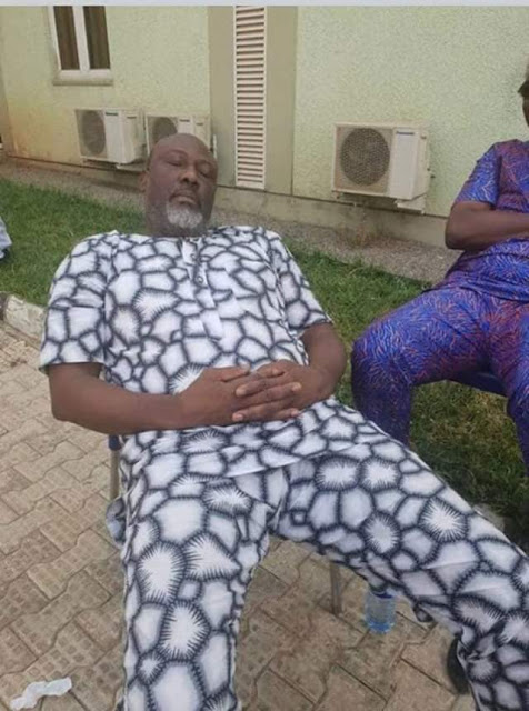 Masked security operatives reportedly stormed the Police Hospital, Area 1, where Dino Melaye was admitted and whisked him away yesterday. Hours later, the Senatorial was seen like this outside...