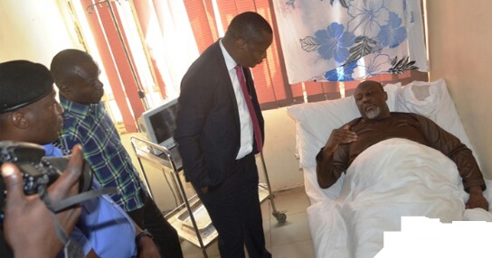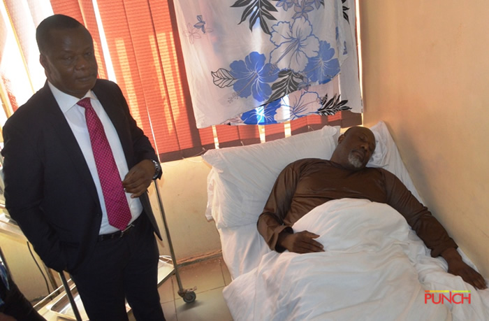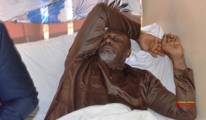 Embattled senator Dino Melaye has been pictured in a hospital on Monday where he is receiving treatment after collapsing when he was arrested by police.
