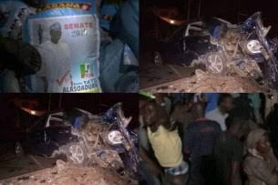 A truck, conveying customised bags of rice with the picture and name of APC senator, Tayo Alasoadura from the neighbouring Ondo state caused the accident.